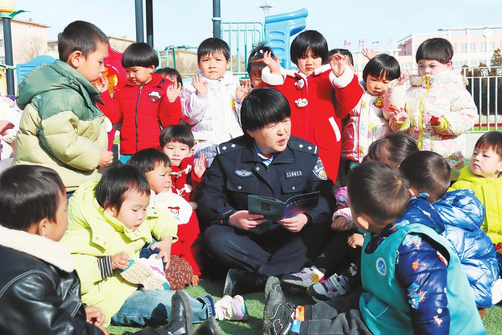 民警向小朋友講解法律知識。3月3日,隴西縣公安局西郊派出所民輔警走進(jìn)幼兒園,開展法治宣傳和安全教育。新甘肅·甘肅法治報通訊員朱艷霞攝