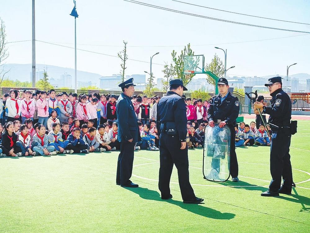 民警開展演練培訓。5月12日,臨洮縣公安局西郊派出所組織民輔警走進轄區(qū)學校開展反恐防暴應急演練培訓。新甘肅·甘肅法治報通訊員馬淑英攝