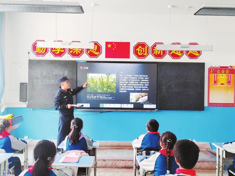 民警正給學(xué)生講解“防范青少年藥物濫用”等禁毒知識(shí)。近日,臨潭縣公安局術(shù)布派出所民輔警走進(jìn)轄區(qū)學(xué)校,開(kāi)展以“防范青少年藥物濫用”為主題的禁毒宣傳活動(dòng)。 新甘肅·甘肅法治報(bào)記者金凡裕攝