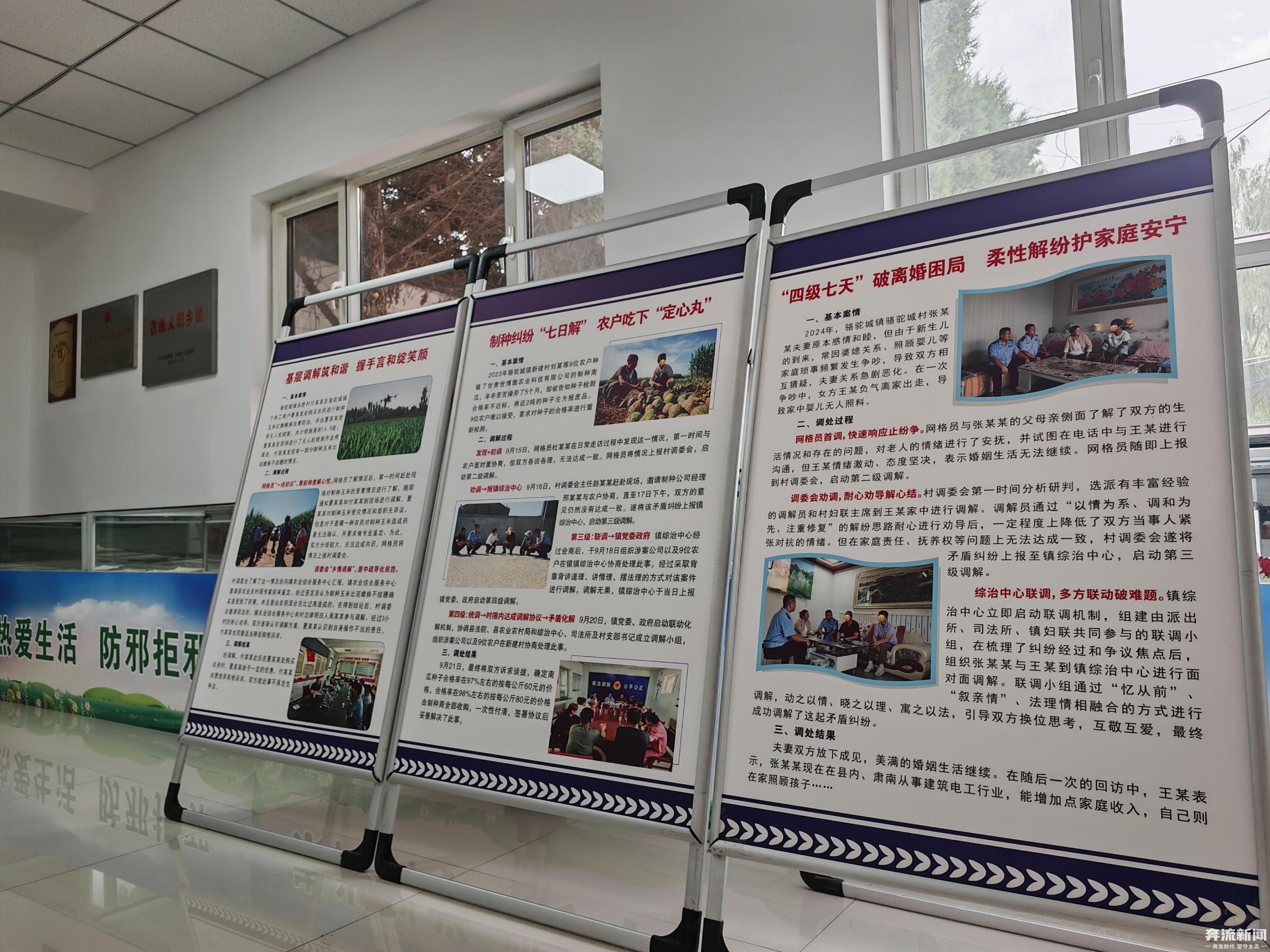 駱駝城鎮(zhèn)是高臺(tái)縣推行“四級(jí)七天”調(diào)解工作法的典型樣本。作為一個(gè)移民鄉(xiāng)鎮(zhèn),這里聚居著12個(gè)民族、來自5省8區(qū)的群眾。水事、農(nóng)事糾紛一度高發(fā)。