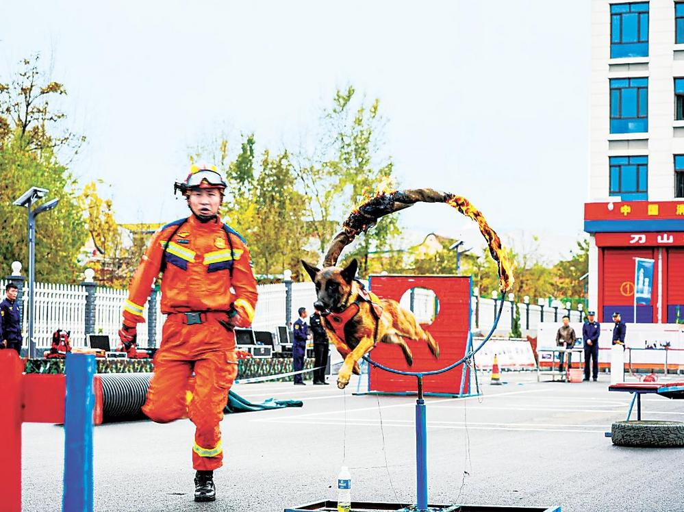 搜救犬搜救演練現(xiàn)場。臨夏州消防救援支隊(duì)供圖