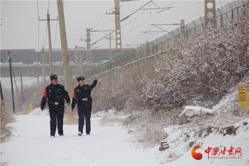 春運(yùn)期間,天水普降大雪,天水南站派出所民警加強(qiáng)警力部署,在站前廣場開展為民服務(wù)