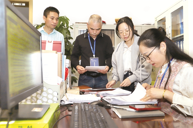 “五一”將至,浙江省金華市婺城區(qū)紀(jì)委監(jiān)委堅(jiān)守節(jié)點(diǎn),對(duì)重點(diǎn)場(chǎng)所、重要領(lǐng)域和關(guān)鍵環(huán)節(jié)開(kāi)展監(jiān)督檢查,打好糾治“四風(fēng)”組合拳。圖為該區(qū)紀(jì)委監(jiān)委聯(lián)合審計(jì)、財(cái)政等部門對(duì)某單位“三公”經(jīng)費(fèi)使用和津補(bǔ)貼發(fā)放情況進(jìn)行抽查。樓婷 攝