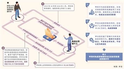 楊一龍:根據刑法第一百八十六條規(guī)定,違法發(fā)放貸款罪是指銀行或者其他金融機構的工作人員違反國家規(guī)定發(fā)放貸款,數額巨大或者造成重大損失的行為。本案中,對于甲接受有關公司和個人請托,在明知其借款用途不真實、貸款資料虛假或冒名貸款等情況下仍審核通過貸款,明顯違反國家法律法規(guī)不存在爭議。但有觀點認為,甲審核通過貸款僅為發(fā)放貸款環(huán)節(jié)中的一個非決定性環(huán)節(jié),不應讓甲承擔違法發(fā)放貸款的刑事責任,如果認定其構成違法發(fā)放貸款罪,那么就應追究貸款環(huán)節(jié)所有人的罪責。