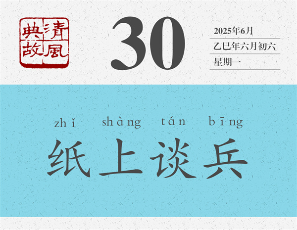 這就是歷史上著名的長平之戰(zhàn)。后人即根據(jù)趙括只會照搬兵書而不知變通之事,引申出“紙上談兵”之典,比喻只會紙上空談,而不能解決實(shí)際問題,或者只會空發(fā)議論,而得不到真正落實(shí)。清人張問陶詩《即事》:“紙上談兵壁上觀,立言先慮立功難。”