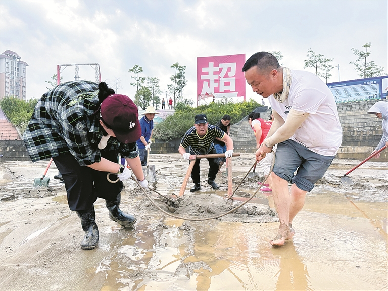 廣西壯族自治區(qū)柳州市融安縣紀(jì)委監(jiān)委聞“汛”而動(dòng),緊盯防汛統(tǒng)籌協(xié)調(diào)等關(guān)鍵環(huán)節(jié)開(kāi)展全程監(jiān)督檢查。圖為日前,該縣紀(jì)檢監(jiān)察干部在河?xùn)|龍舟廣場(chǎng)開(kāi)展災(zāi)后清淤工作。覃燕 攝
