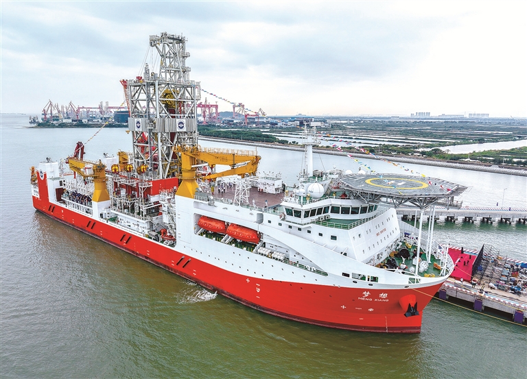 “十四五”時期,我國持續(xù)加強(qiáng)關(guān)鍵核心技術(shù)攻關(guān)和成果應(yīng)用,加快高端裝備、先進(jìn)制造等領(lǐng)域關(guān)鍵技術(shù)攻關(guān),推動傳統(tǒng)產(chǎn)業(yè)向高端化、智能化、綠色化轉(zhuǎn)型。圖為擁有最大11000米的鉆深能力、我國自主設(shè)計建造的首艘大洋鉆探船“夢想”號,該船于“十四五”時期正式入列(資料圖片)。新華社記者 劉大偉 攝