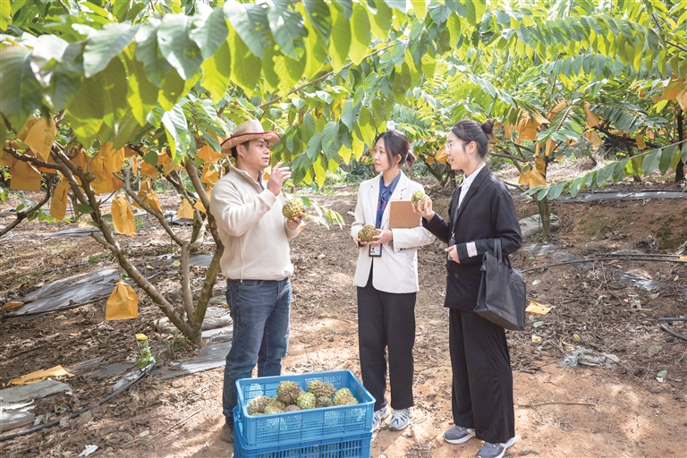 廣東省四會(huì)市紀(jì)委監(jiān)委把“百千萬(wàn)工程”作為政治監(jiān)督的“頭號(hào)工程”來(lái)抓,圍繞產(chǎn)業(yè)發(fā)展、土地資金要素保障、干部作風(fēng)等開(kāi)展精準(zhǔn)監(jiān)督。圖為近日,該市紀(jì)委監(jiān)委干部到逕口鎮(zhèn)釋迦果種植基地走訪了解有關(guān)情況。胡源 攝