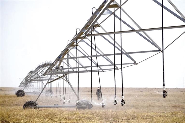 在農(nóng)投集團現(xiàn)代牧草休閑示范園項目,平整一新的2.3萬畝土地上,3組大型噴灌設(shè)備已經(jīng)投入緊張的工作中,隨著工作人員啟動設(shè)備,噴灌機所過之處土地一片濕潤,空氣中充滿了泥土的清新。據(jù)現(xiàn)場負責人介紹,連續(xù)幾日,他們都在緊鑼密鼓開展春灌工作,利用大型噴灌設(shè)備,不僅實現(xiàn)了水資源的高效利用,而且減少了人力投入,工作效率更高。