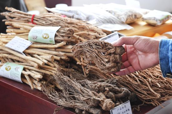圖為2018年10月,民樂(lè)中藥材博覽會(huì)上的中藥材。(資料圖)