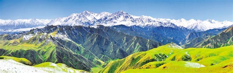 初秋的祁連山,碧空如洗,遠(yuǎn)峰疊翠。山頂?shù)姆e雪在陽(yáng)光照射下閃閃發(fā)光,陣陣清風(fēng)拂過(guò)黃綠交錯(cuò)的山林,驚起幾只飛鳥(niǎo)……