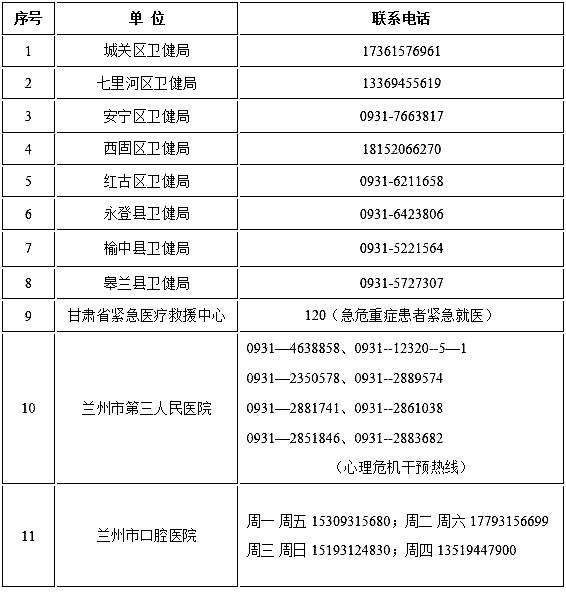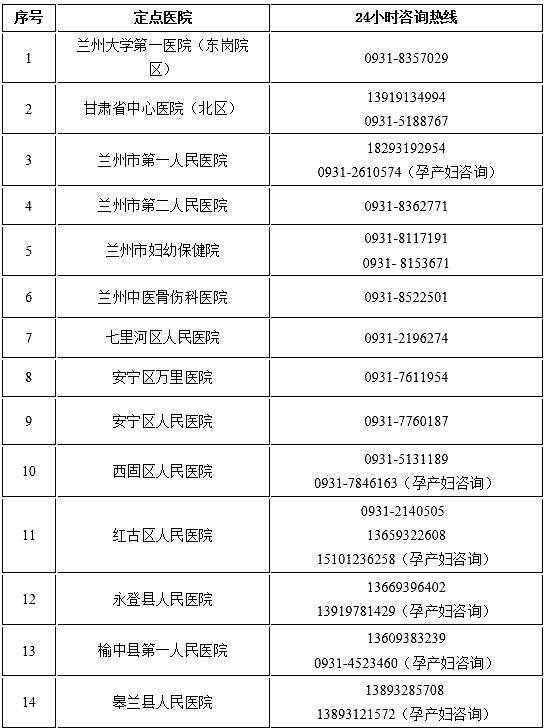 •蘭州市域“非綠碼”定點(diǎn)醫(yī)院24小時(shí)咨詢(xún)熱線•