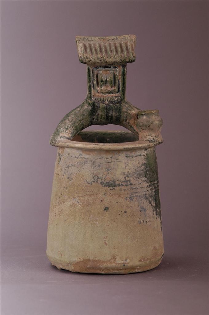 其中,綠釉陶井高26.2厘米,口9.4厘米,底12.5厘米,為蘭州市博物館館藏三級(jí)文物。兩漢時(shí)期陶井作為漢代模型明器的重要組成部分,普遍見于兩漢時(shí)期的墓葬中。漢代推崇儒家思想,以“孝”治國,提倡厚葬,“事死如事生”的喪葬觀念,導(dǎo)致在兩漢墓葬中多隨葬陶井模型明器,是模仿現(xiàn)實(shí)中的水井設(shè)施,將之做成模型埋入墓中供逝者享用。漢代,水井設(shè)施被廣泛地使用,考古發(fā)現(xiàn)的漢代居住、農(nóng)業(yè)及手工業(yè)遺址中出土有大量的水井遺跡。