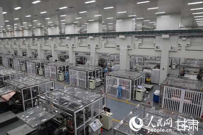 甘肅海亮新能源材料有限公司的生產(chǎn)車間內(nèi),工人們正在生產(chǎn)線上忙碌。人民網(wǎng)記者 黃帆攝