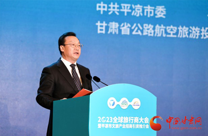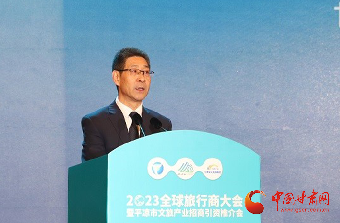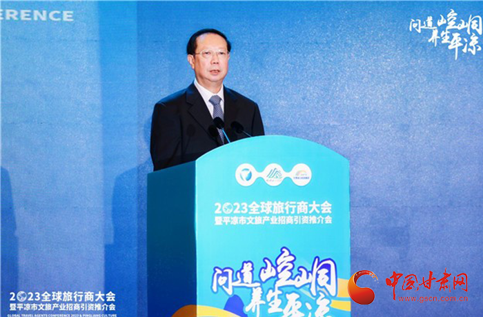何效祖在致辭中說(shuō),平?jīng)鍪歉拭C向東開(kāi)放的“門(mén)戶(hù)”城市,是風(fēng)景宜人的旅游城市,是甘肅布局的文旅康養(yǎng)基地和支撐“一核三帶”區(qū)域發(fā)展格局中的重要支點(diǎn),擁有崆峒山、大云寺·王母宮、瑤池溫泉等眾多聞名遐邇的人文和自然景觀。今天,我們與平?jīng)鍪形姓?、中?guó)旅行社協(xié)會(huì)、甘肅公航旅集團(tuán)一道搭建平臺(tái),誠(chéng)邀各位嘉賓走進(jìn)甘肅、深入平?jīng)?,組織開(kāi)展宣傳推介、洽談合作、展示展銷(xiāo)、考察踩線(xiàn)等系列活動(dòng),就是要引導(dǎo)大家深度感知甘肅高質(zhì)量發(fā)展的強(qiáng)烈愿望,實(shí)地觸摸甘肅文旅如火如荼的生動(dòng)實(shí)踐,誠(chéng)懇表達(dá)隴原兒女“視企業(yè)家為最寶貴財(cái)富”的真誠(chéng)合作和赤誠(chéng)服務(wù)之心。我們衷心希望,廣大中外旅行商和文旅專(zhuān)家、文旅企業(yè)家以本次大會(huì)為契機(jī),加強(qiáng)交流互鑒,深化務(wù)實(shí)合作,加大在甘投資力度,組織更多游客到甘肅觀光旅游,帶動(dòng)更多優(yōu)質(zhì)文旅企業(yè)和項(xiàng)目落戶(hù)甘肅,合力譜寫(xiě)甘肅文旅高質(zhì)量發(fā)展的嶄新篇章!