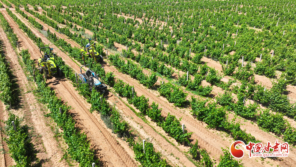 6月13日,張掖市臨澤縣板橋鎮(zhèn)昔日的北部荒漠區(qū),如今已是萬(wàn)畝葡萄種植基地。