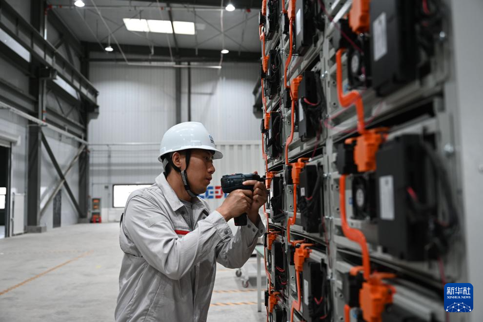 8月10日,工人在葛洲壩(甘肅)能源科技有限公司組裝電化學(xué)儲能裝置。新華社記者 金良快 攝