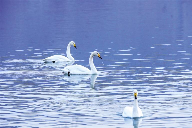 “生態(tài)好不好,鳥兒是晴雨表。”近日,西固區(qū)達(dá)川鎮(zhèn)三河口迎來了今年首批越冬大天鵝,吸引了眾多市民游客前往觀賞。記者從蘭州市林業(yè)局了解到,目前黃河蘭州段濕地分布和棲息的濕地鳥類約有68種,其中,國家I級(jí)重點(diǎn)保護(hù)鳥類3種(黑嘴鷗、黑鸛、白尾海雕),國家II級(jí)保護(hù)鳥類5種(大天鵝、鴛鴦、鹮嘴鷸、白腰杓鷸、鶚)。鵲鴨、綠頭鴨、斑嘴鴨、普通秋沙鴨和漁鷗等優(yōu)勢(shì)越冬水鳥種群數(shù)量較大,主要棲息地分布在沿線各灘涂地,棲息地質(zhì)量較高。