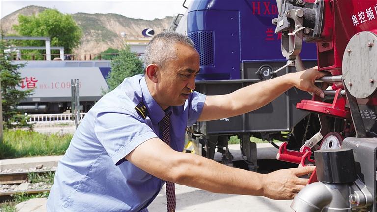 中國甘肅網(wǎng)7月9日訊 據(jù)蘭州晚報報道(記者 譚安麗 文/圖 通訊員 趙童)仲夏時節(jié),陽光明媚,沐浴著大西北的陽光,一列飛馳的鋼鐵巨龍在隴海線群山中穿行。駕駛室內,56歲的司機劉曉明手握閘把、眼睛緊緊注視前方,操縱著機車穿山越谷,快速馳騁。