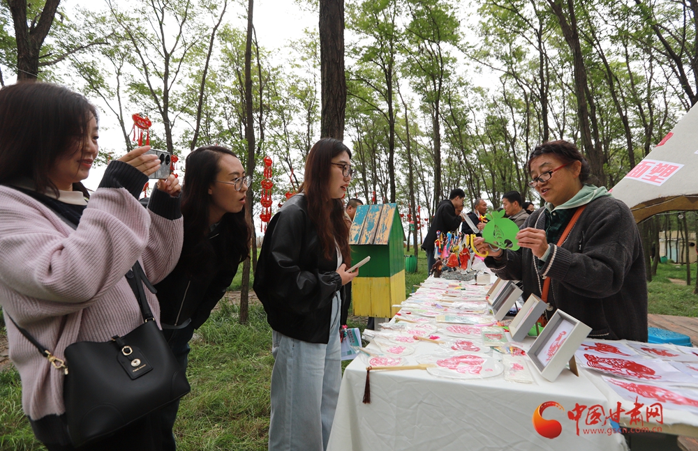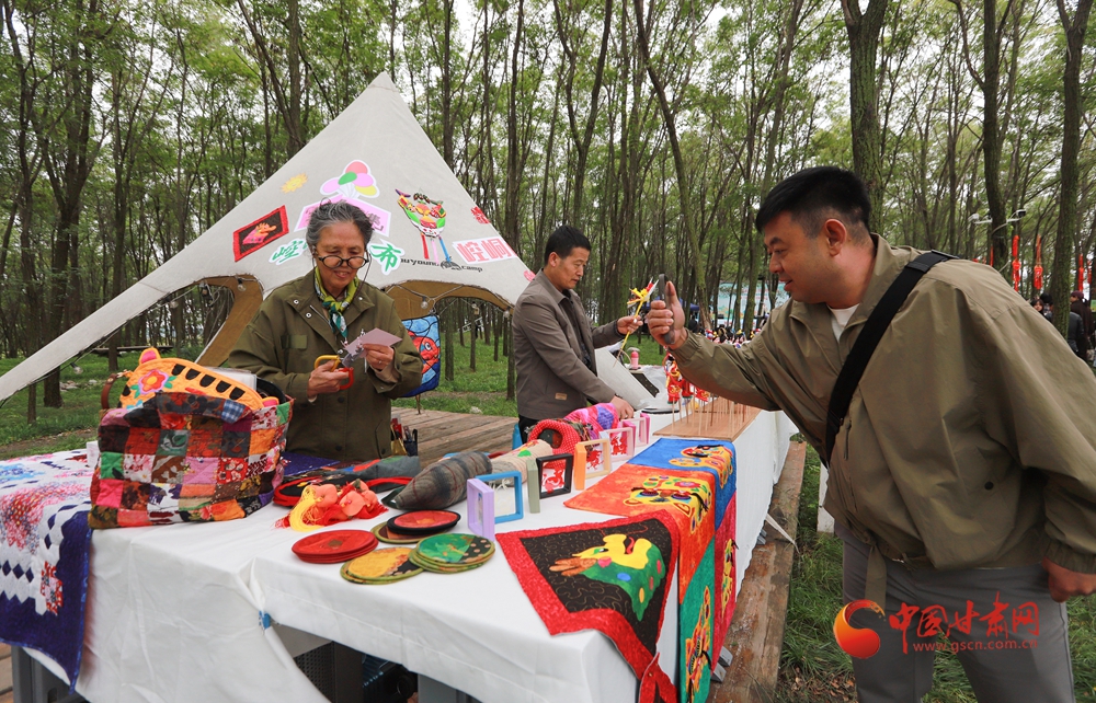 活動(dòng)現(xiàn)場(chǎng)還設(shè)置了非遺展示區(qū)與美食品鑒區(qū),天津剪布、面塑與崆峒剪紙、泥塑等交相輝映,羊肉泡饃、釀皮、油馓子等鄉(xiāng)土美食香氣四溢,讓現(xiàn)場(chǎng)觀眾愛不釋手。