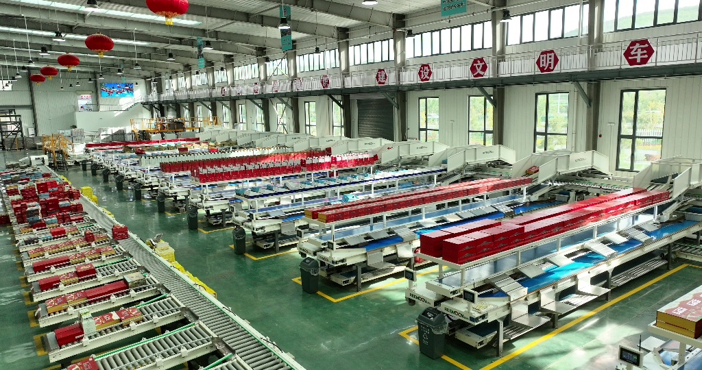 靜寧蘋果科創(chuàng)園里的蘋果智能分選線(靜寧縣融媒體中心供圖)