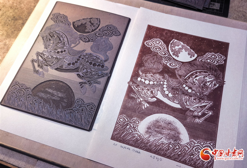 從彩陶紋樣到飛天神韻,從黃河之濱到絲路駝鈴,當(dāng)傳統(tǒng)技藝遇上現(xiàn)代思維,當(dāng)?shù)赜蛭幕鲎踩蛞曇?,趙寧的刀刻人生,既是個人對藝術(shù)的執(zhí)著追求,更是一位非遺傳承人對文化根脈的深情守護(hù)。正如他所說:“版畫不是冰冷的木板,而是有溫度的文化記憶。”在這方寸之間的刻板上,甘肅的故事正被重新書寫,非遺傳承也在時代語境下實現(xiàn)著創(chuàng)造性轉(zhuǎn)化,綻放出更加絢爛的光彩。