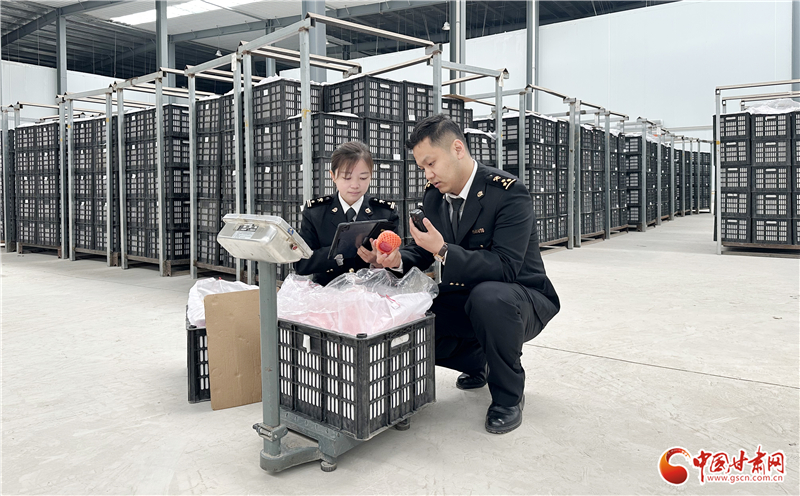 蘭州海關(guān)所屬天水海關(guān)關(guān)員現(xiàn)場查驗(yàn)出口蘋果/蘭州海關(guān)供圖