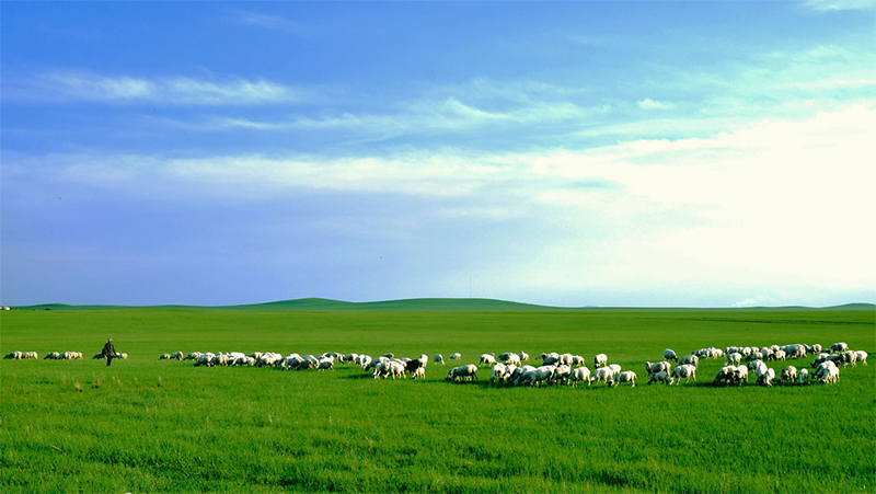 繞過大山,大地如一張折疊著的紙被突然展平。眼前變得開闊了。一只鷹從公路的一邊滑翔到另一邊,當(dāng)它從車頂上飛過時(shí),整個(gè)貢格爾草原都慢了下來。風(fēng)舒緩地吹皺了貢格爾河的河水,牛羊在路兩旁悠閑地散步。為了能及時(shí)躲避進(jìn)入公路的牛羊,車子明顯放慢了速度。我的心恨不得插上翅膀,和剛剛飛過車頂?shù)男埴椧粯?,好好看看這遼闊的草原。
