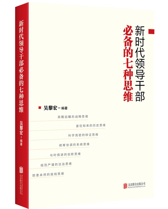 日前,北京聯(lián)合出版公司出版了《新時(shí)代領(lǐng)導(dǎo)干部必備的七種思維》一書。本書圍繞如何提高理論思維能力,對戰(zhàn)略思維、歷史思維、辯證思維、系統(tǒng)思維、創(chuàng)新思維、法治思維、底線思維的含義、功用和訓(xùn)練方法進(jìn)行了系統(tǒng)闡述。