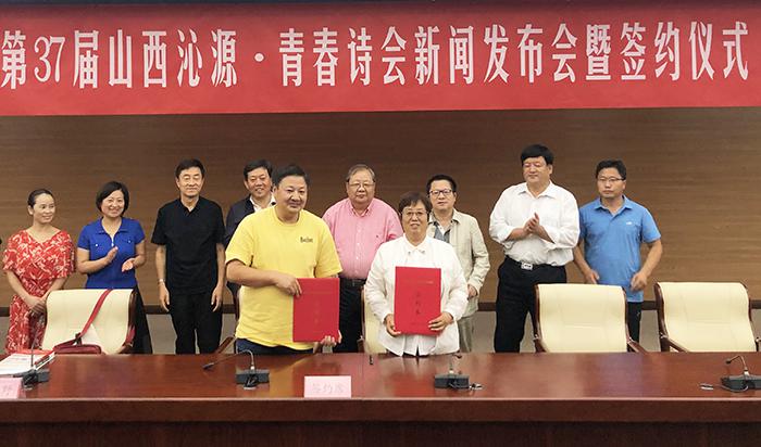 沁源縣委書記金所軍介紹沁源縣盛產(chǎn)油松、褐馬雞,村村有秧歌隊(duì)和籃球場(chǎng),有山有水,美麗又美好。他將作為“全國森林旅游示范縣”的沁源縣詩意概括為“三晉大地的香格里拉”“近在咫尺的桃花源”。沁源縣委宣傳部部長(zhǎng)黃貴河對(duì)沁源縣的文學(xué)創(chuàng)作情況及第37屆“青春詩會(huì)”活動(dòng)承辦設(shè)想進(jìn)行了介紹。發(fā)布會(huì)結(jié)束后,沁源縣政府副縣長(zhǎng)李建萍與《詩刊》事業(yè)發(fā)展部副主任藍(lán)野簽定了合作協(xié)議。