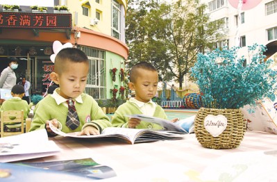 定西安定區(qū)友誼幼兒園“小書(shū)架”。