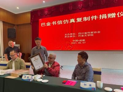 5月7日上午,巴金書信手稿復(fù)制件捐贈(zèng)儀式在位于成都龍泉驛的巴金文學(xué)院舉行。巴金侄子、作家李致捐贈(zèng)了巴老寫給自己的二百余封信,以及李致父親、巴金大哥寫給巴金的四封僅存信件的仿真復(fù)制件。李致說,所有這些信,充分展示了巴老的內(nèi)心世界。這些珍貴的文本由青羊區(qū)檔案館精心復(fù)制,幾乎與原信沒有差別。