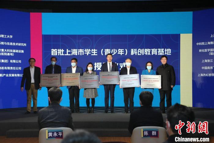 首批上海市學(xué)生(青少年)科創(chuàng)教育基地代表獲授牌。 上海市科技藝術(shù)教育中心供圖