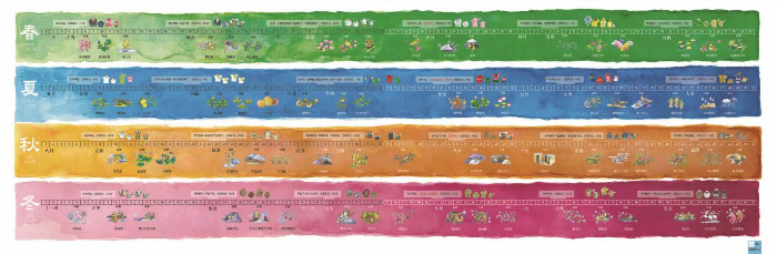 每一個(gè)節(jié)氣再劃分為三候……這三候分別以幾個(gè)字的形容,分成初中末三段對(duì)應(yīng)置入年歷中,文字中可感受到早年中國(guó)黃河流域的景物。