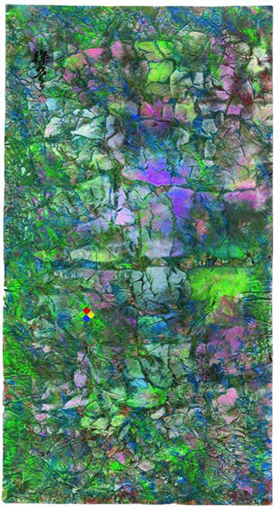 徐冬冬認(rèn)為,二十四節(jié)氣歷史悠久,可追至上古時(shí)代,蘊(yùn)含著對(duì)天地萬物生命起源的哲學(xué)認(rèn)知。中國(guó)抽象繪畫,畫的是生命本質(zhì)的生生滅滅。畫的是“空”,而不是“色”。他告訴記者,在創(chuàng)作這組畫時(shí),他會(huì)細(xì)致捕捉依次出現(xiàn)的時(shí)令、氣候、物候的變化,通過八識(shí)中的“眼、耳、鼻、舌、身、意”來感受大自然的氣息,然后用抽象的筆觸呈現(xiàn)在畫紙上。“我就像是一臺(tái)感應(yīng)器,每一個(gè)汗毛孔都在感受著天地的氣息。”徐冬冬說。作畫的宣紙經(jīng)過特殊處理,也有了肌理和紋路,色彩濃烈的畫作仿佛有了生命,似乎在呼吸伸展。