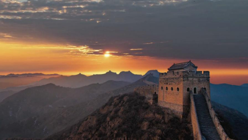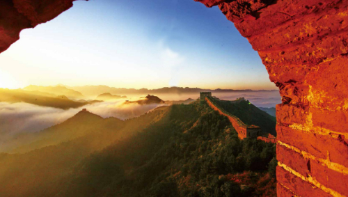 跨峻嶺,穿荒原,橫瀚海,經(jīng)絕壁,縱橫十萬里。望不斷長龍烽垛,雄關隘口,猶如玉帶明珠,點綴成江山錦繡。起伏奔騰,飛舞盤旋,長城就是中國人給這個世界增添的偉大奇跡。