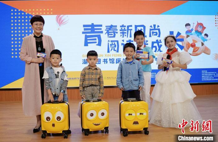 湯素蘭與小讀者合影。湖南圖書館供圖