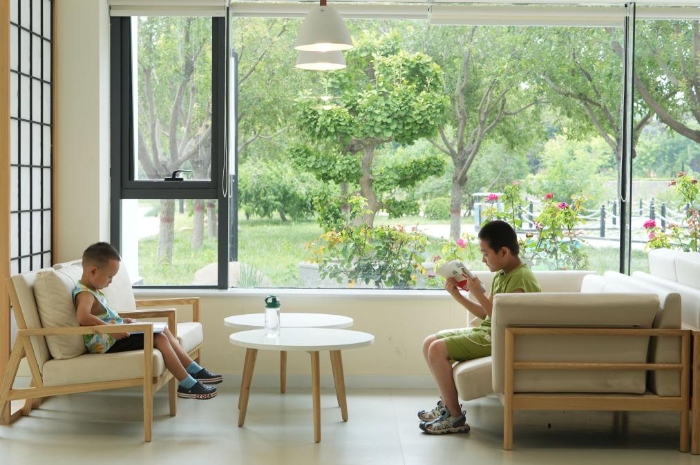 8月9日,小朋友在河北省石家莊市鹿泉區(qū)龍泉湖公園內(nèi)一處公園書房閱讀。