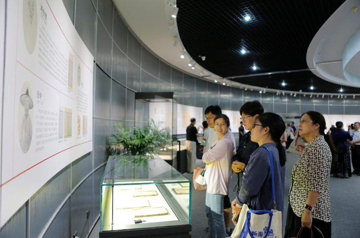 8月22日,市民在揚(yáng)州市圖書館“冊(cè)府千華——《永樂大典》與大運(yùn)河文獻(xiàn)展”上參觀。