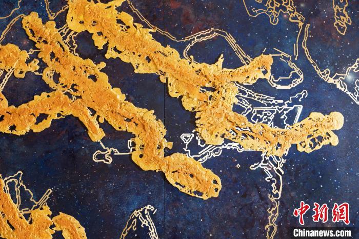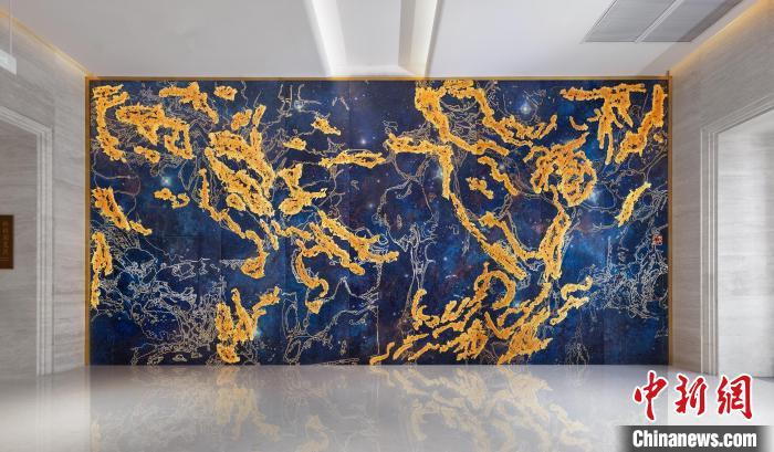 記者了解到,這幅熔銅壁畫采用國家級非遺銅雕技藝,結(jié)合熔銅藝術(shù)、釉彩著色等創(chuàng)新技藝制作而成,從設(shè)計、制作、誕生,全程歷時一年,難度很大。壁畫以朱炳仁手繪的星空“云水墨”制作,用大面積深藍(lán)宇宙為底,采用熔銅藝術(shù)構(gòu)成繁星點點。