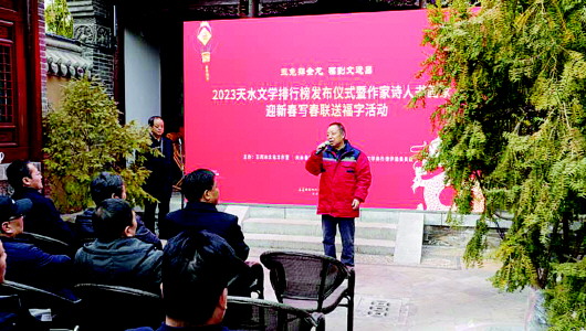 近日,由王若冰文化工作室組織評(píng)選的“2023天水文學(xué)排行榜”上榜作品揭曉,15位作家的15篇(部)作品榮登榜單。同時(shí),2023天水文學(xué)排行榜發(fā)布儀式暨作家詩(shī)人書畫家“迎新春 寫春聯(lián) 送福字”活動(dòng)在天水古城三號(hào)院舉行。