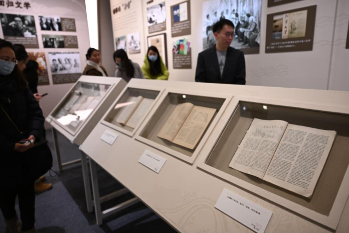 “近300張照片和550余件展品,全景記錄王蒙70年來與共和國發(fā)展歷史相伴、與祖國和人民同呼吸共命運的文學創(chuàng)作歷程。”本次展覽策展人江琳介紹,展覽展示了王蒙先生跌宕起伏的人生經(jīng)歷和各時期的代表性優(yōu)秀文學作品,表現(xiàn)他為黨、為國家、為人民寫作的初心和使命。