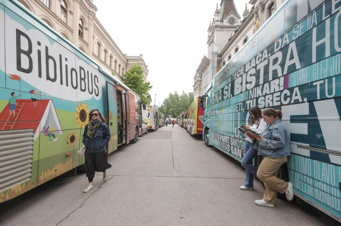 當(dāng)日,18輛裝備齊全的移動(dòng)圖書館車在盧布爾雅那國(guó)會(huì)廣場(chǎng)和維戈瓦街展出,以慶祝為期兩天的移動(dòng)圖書館節(jié)。