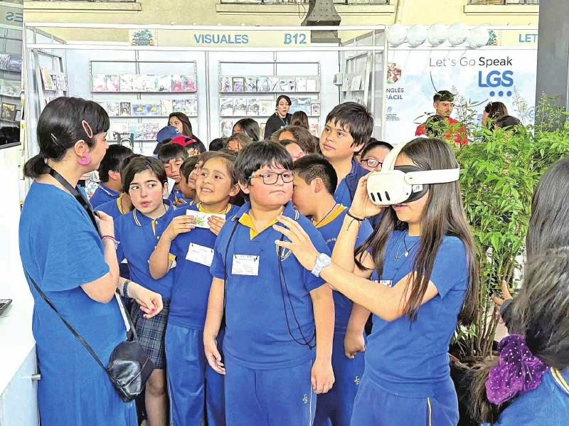 圖為小讀者在書(shū)展期間體驗(yàn)中國(guó)展區(qū)內(nèi)的閱讀“黑科技”。