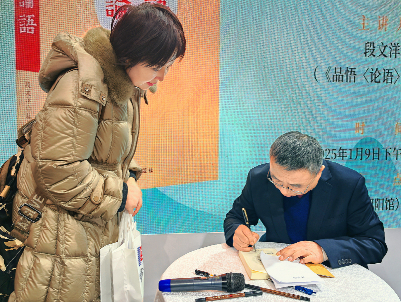 《品悟〈論語(yǔ)〉》一書作者段文洋在活動(dòng)現(xiàn)場(chǎng)為讀者簽名