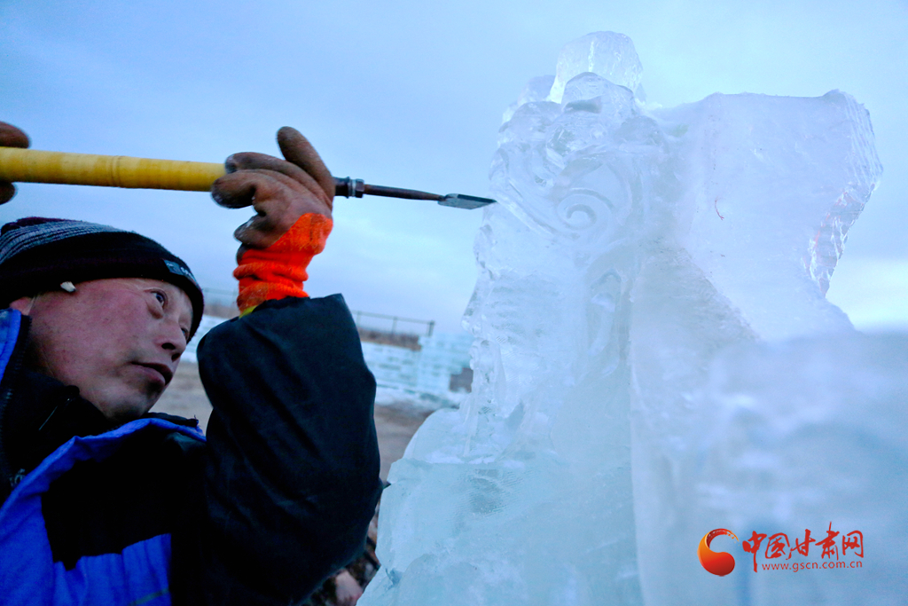 甘肅張掖:精心打磨冰雕迎春節(jié)(組圖) -