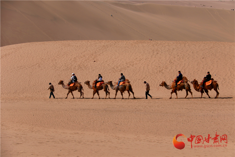 5月19日是中國(guó)旅游日,游客來到甘肅省敦煌市鳴沙山月牙泉景區(qū),欣賞大漠壯美風(fēng)光,體驗(yàn)獨(dú)特絲路風(fēng)情。