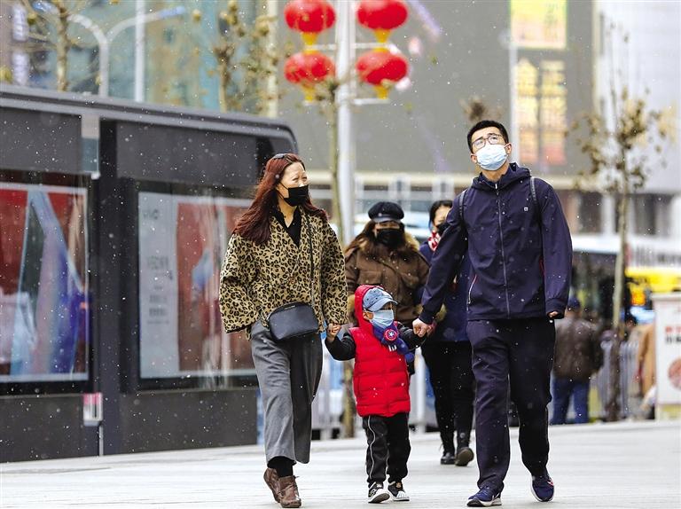 2月28日我市出現(xiàn)降雪天氣,雪花飄落,氣溫也隨之下降,最低氣溫降至-4℃。 記者 馬軍 攝