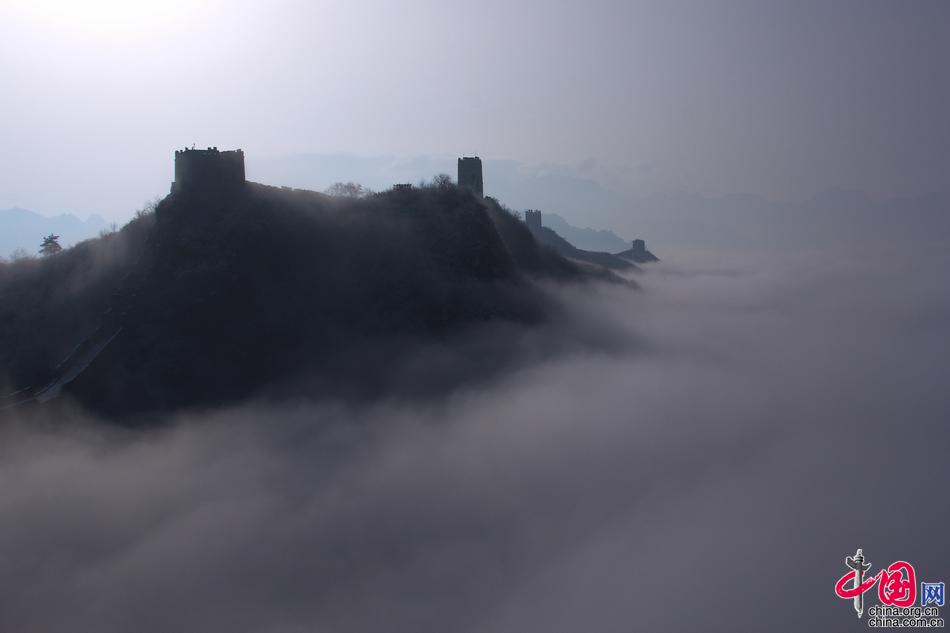 三月二十日清晨,當(dāng)云海隨著氣流漫過金山嶺長城,浩浩蕩蕩飄入仿佛成為了浩瀚的海洋。