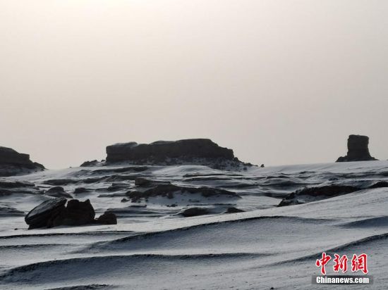“中國(guó)旱極”敦煌雅丹魔鬼城變“冰雪世界”